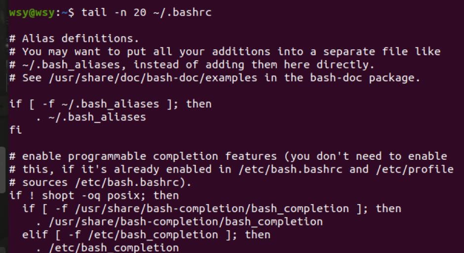 (20)查看主文件夹下.bashrc文件内容最后20行