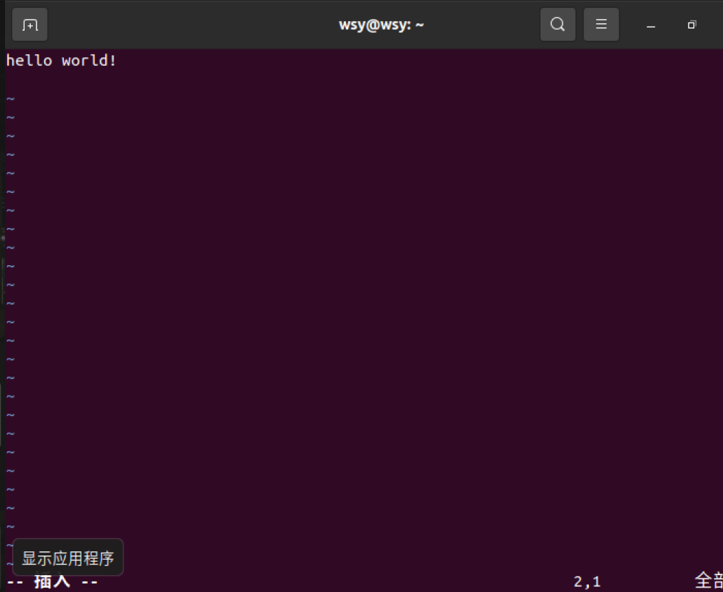 vim ~/my.txt 输入完内容后Esc 输入:qw 回车