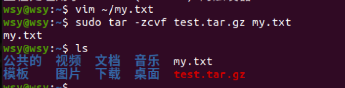 (24)将my.txt打包成test.tar.gz