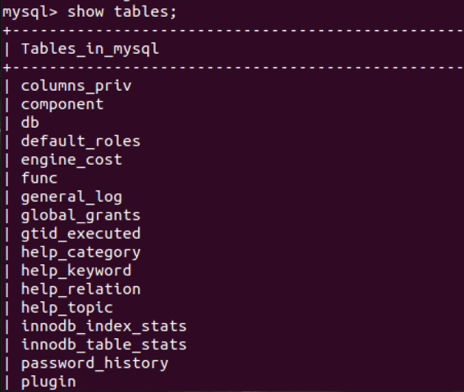 (28)展示库里表格:show tables;