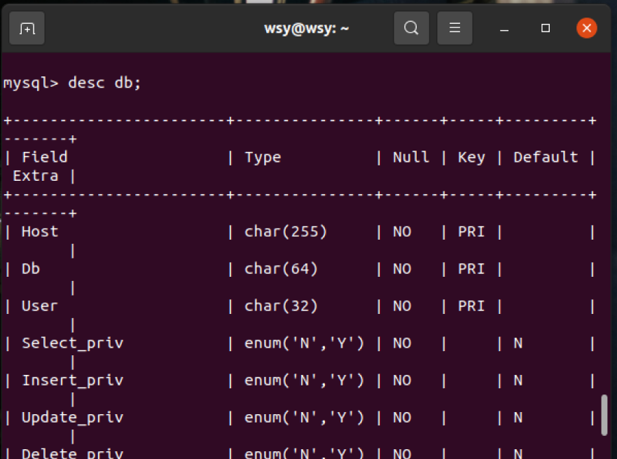 (29)显示某一个表格属性:desc 表格名;