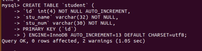 (32)在sc中创建一个表格:create table if not exists student( );