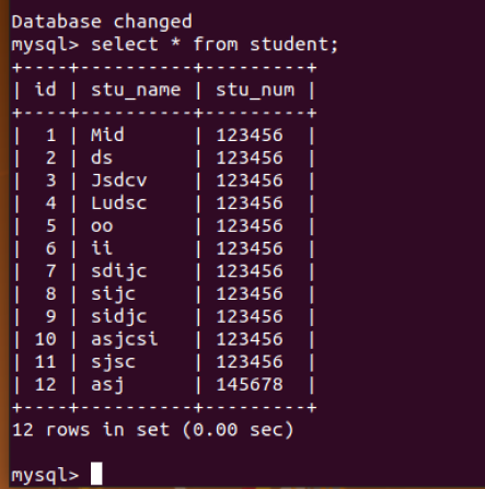 (33)向表格student中插入具体内容:insert into 表格名(名)values(value);