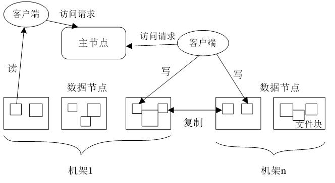 例如在Hadoop中,HDFS采用了基于Master/Slave主从架构的分布式文件系统,一个HDFS集群包含一个单独的Master节点和多个Slave节点服务器,这里的一个单独的Master节点的含义是HDFS系统中只存在一个逻辑上的Master组件。一个逻辑的Master节点可以包括两台物理主机,即两台Master服务器、多台Slave服务器。一台Master服务器组成单NameNode集群,两台Master服务器组成双NameNode集群,并且同时被多个客户端访问,所有的这些机器通常都是普通的Linux机器,运行着用户级别(user-level)的服务进程.