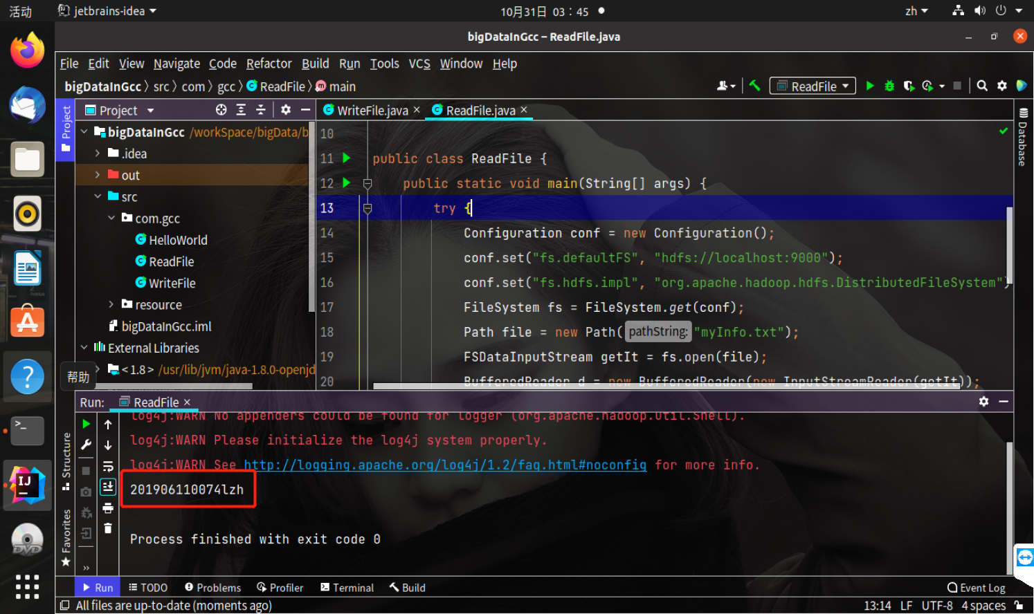 二、利用hadoop 的java api,向HDFS写一个文件。