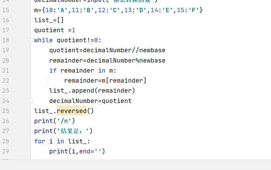进制转换为输入进制 用数除以该进制 组成新数 提取其余数组成列表 对列表排逆序