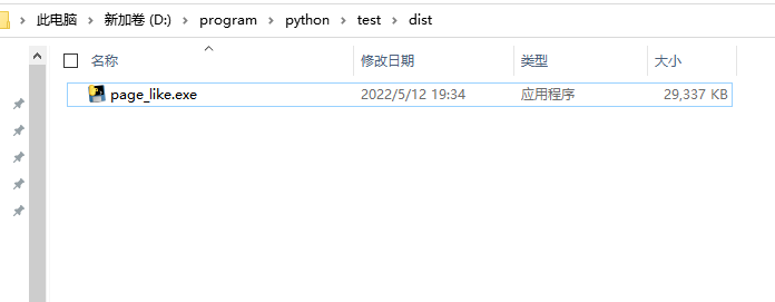 | -F | pyinstaller -F demo.py | 只在dist文件夹中生成一个程序demo.exe文件,适用于一个模块没有多依赖.py文件 |