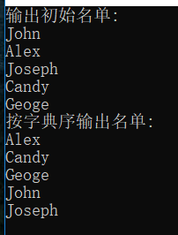 总结,在最后一个编程里面,扶植语句需要用定义一个额外的一维数组,而不是二维数组,之前出现了无法输出按字典排序后名字的问题。