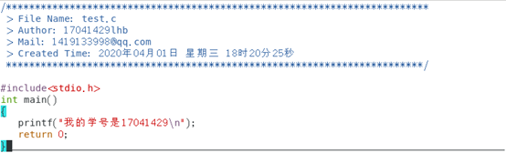 我们可以通过vim编辑器写一个最简单的C语言程序,如写一个输出自己学号的程序,先创建一个文件夹,然后进入该新创建的文件夹