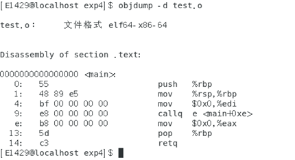 这里生成的不是文本文件了,是二进制文件,我们可以通过objdump命令来反汇编该文件来分析文件内容。