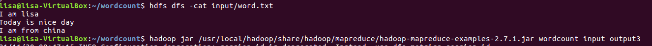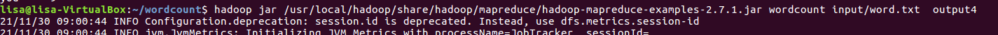 (4)运行hadoop-mapreduce-examples-2.7.1.jar