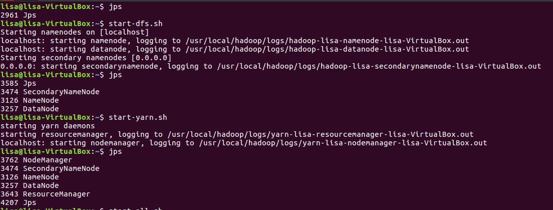 - 启动HDFS与YARN