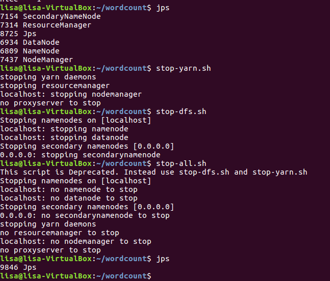 - 停止HDFS与YARN