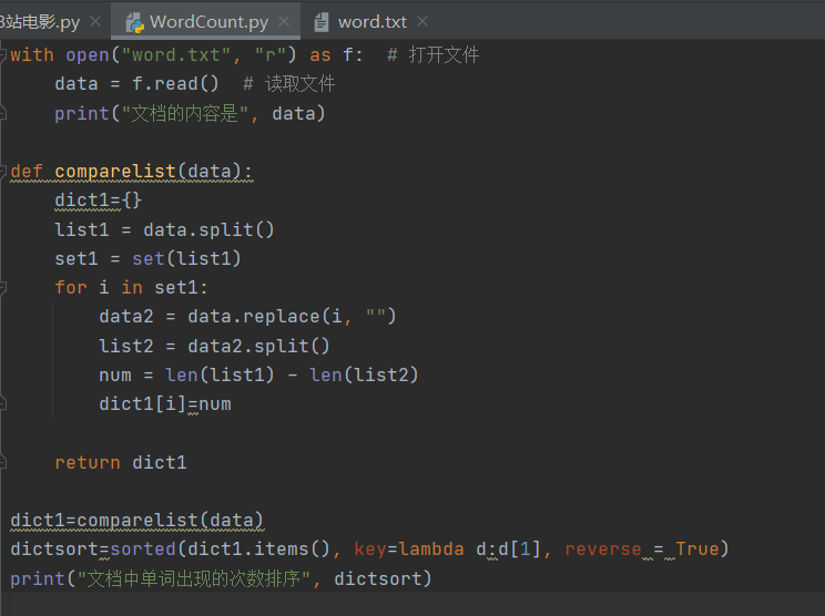 - 按单词统计(字典,key单词,value次数)