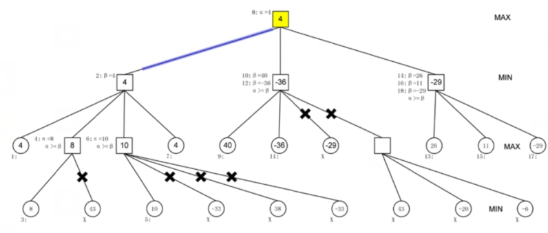 在搜索算法中优化中,剪枝,就是通过某种判断,避免一些不必要的遍历过程,形象的说,就是剪去了搜索树中的某些“枝条”,故称剪枝。应用剪枝优化的核心问题是设计剪枝判断方法,即确定哪些枝条应当舍弃,哪些枝条应当保留的方法。