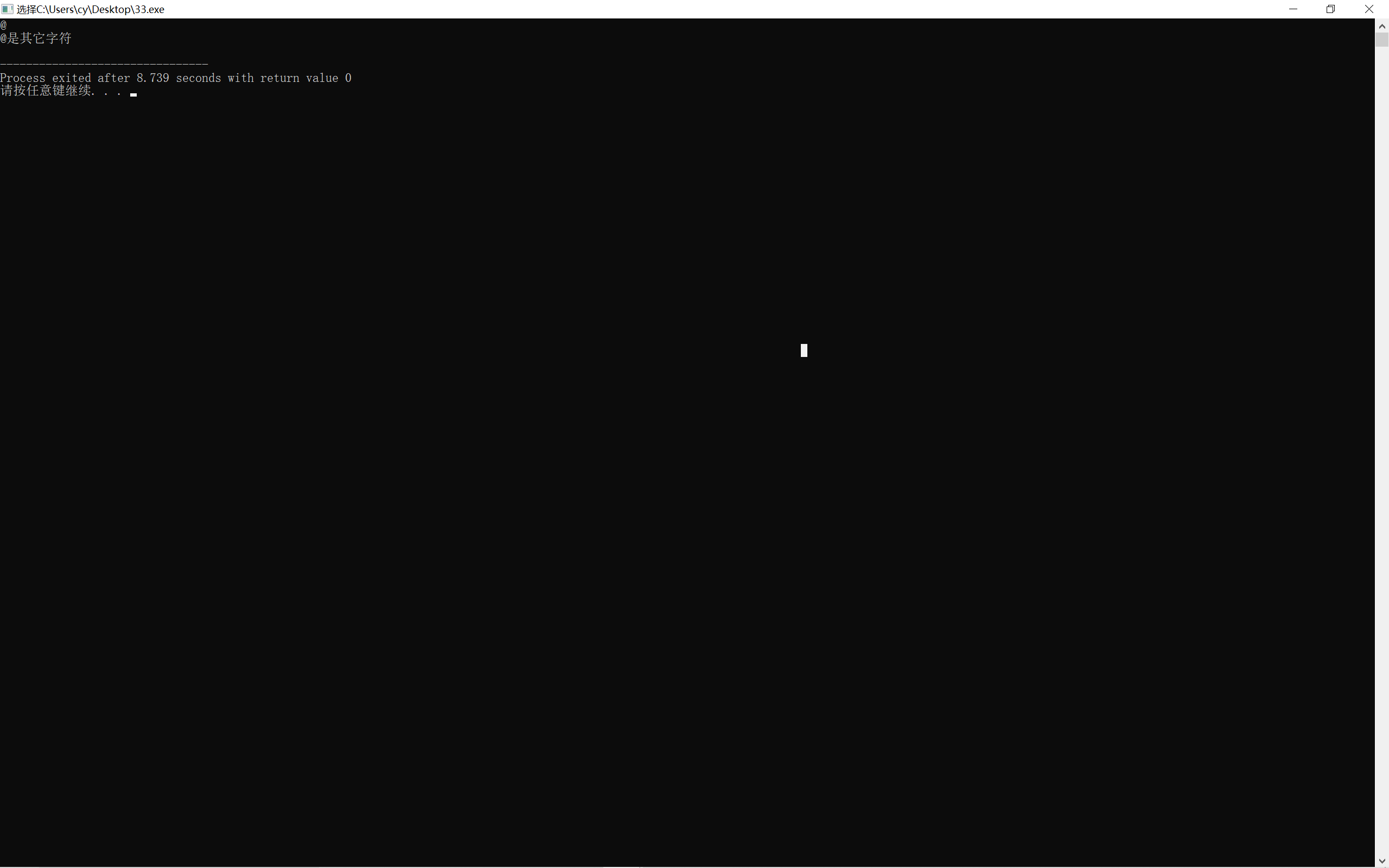#include <stdio.h> int main() { char x; x = getchar(); if (x>47&&x<58 ) printf("%c是数字字符\n", x); else if (x>64&&x<91 ) printf("%c是英文字母\n", x); else printf("%c是其它字符\n", x); return 0; }