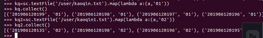 - 生成(姓名,课程分数)键值对RDD,观察keys(),values()