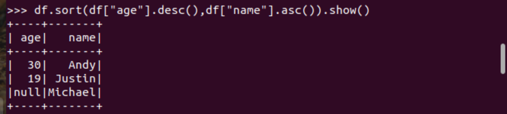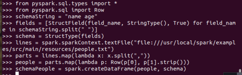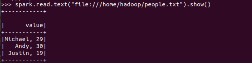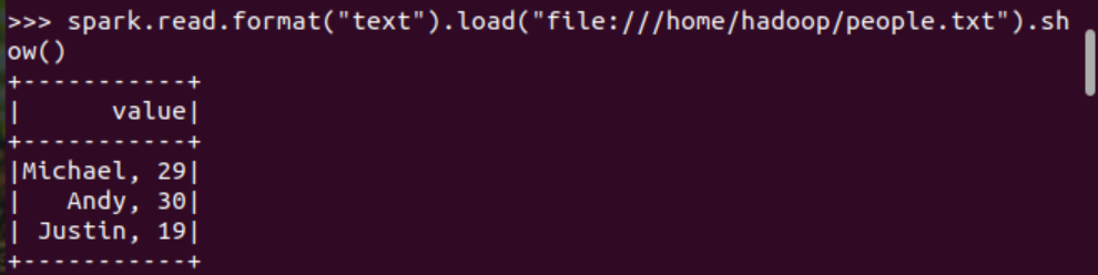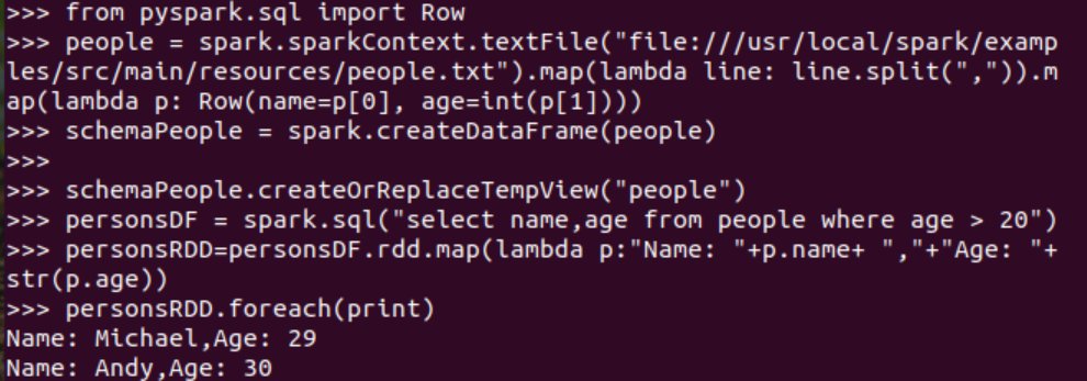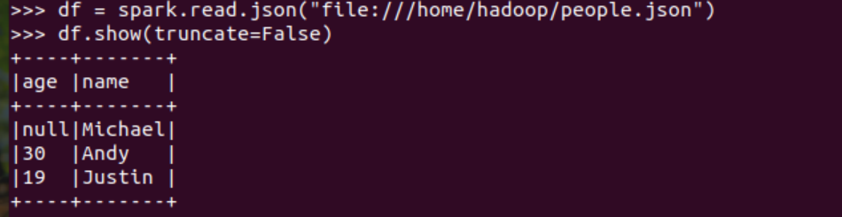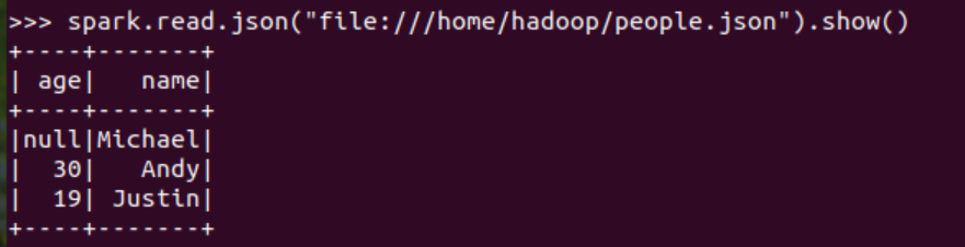 spark.sql执行SQL语句 spark.sql('select name from people').show()