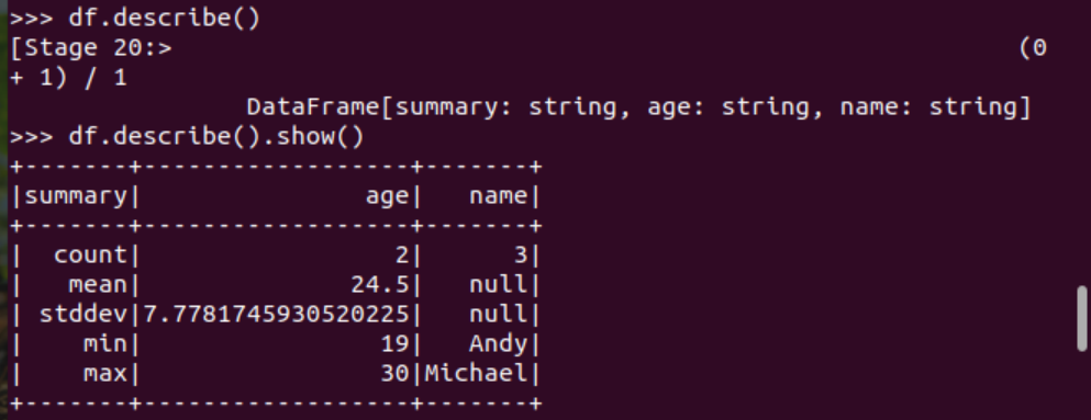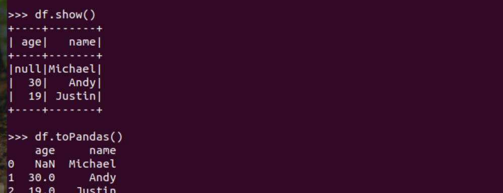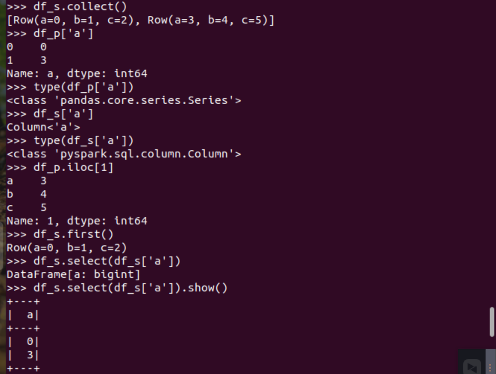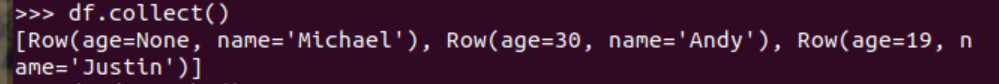 输出全部行 df.collect() #list类型,list中每个元素是Row类