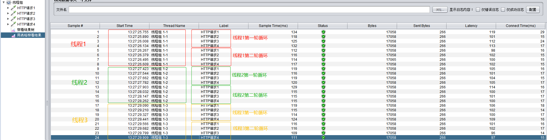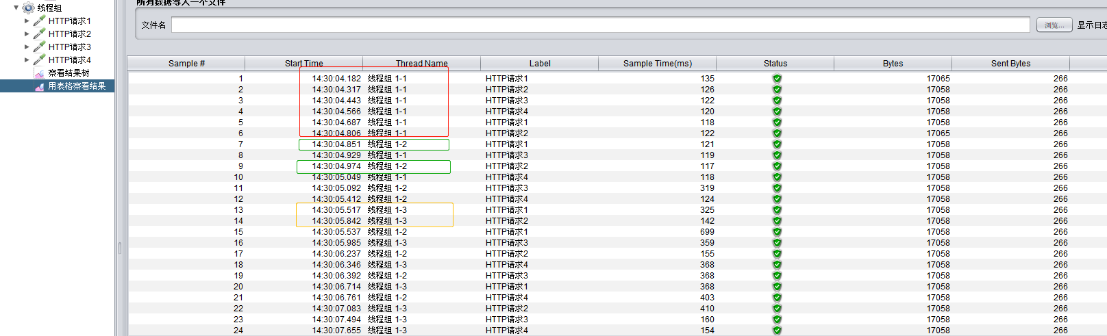 2.同一线程组,不同轮http请求执行顺序,与线程组的启动时间有关;
