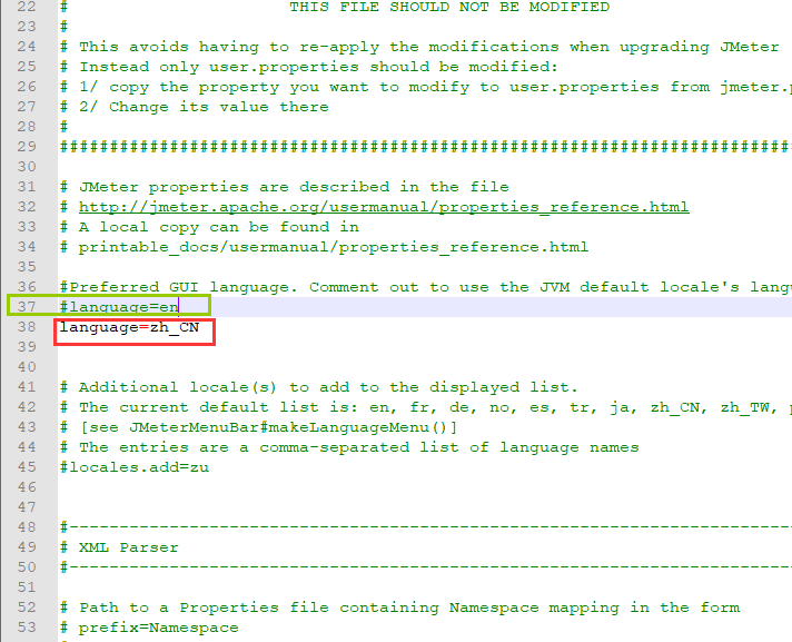 用编辑器打开,把语言改成中文,绿框中的删掉,红框中的加上;然后重新打开就是中文版的了