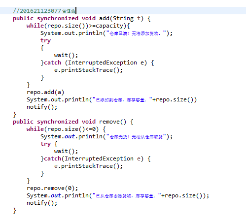 5.2 使用synchronized, wait, notify解决该问题(关键代码截图,需出现学号)