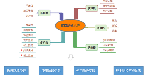 在接口测试执行层面分析面临的问题及挑战,涉及4个层面: