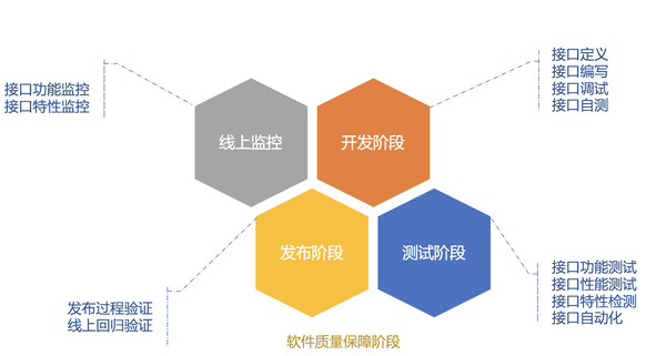 多阶段:开发调试、自测冒烟、功能测试、发布验证、线上回归、持续集成、线上监控