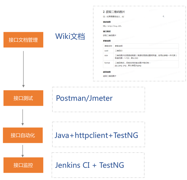 想到2014年,那是一个····的年头,我们的接口管理与测试是这么玩的,接口文档管理采用的是wiki,接口手工测试采用的是Postman/Jmeter,接口自动化是基于TestNG编写的测试框架,接口线上监控是采用的Jenkins CI驱动。