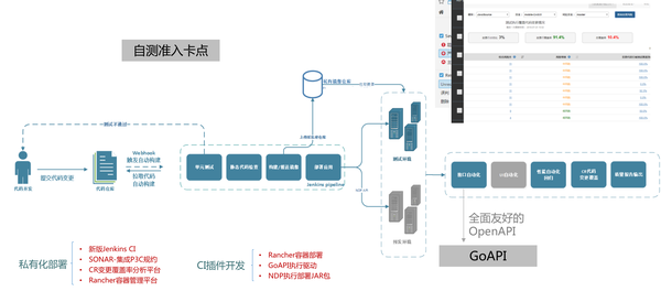 以上提供的是内部业务目前正在实施的持续集成pipeline,将在GoAPI上已有的自动化,纳入持续集成链路,只需要通过GoAPI提供的非常友好的OpenAPI,同样的可以花点看剧的时间写个GoAPI执行驱动插件,也是极好的。以上流程扭转如下: