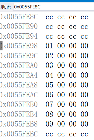 同时可以看出一个二维数组是存储在一块连续的地址空间上.