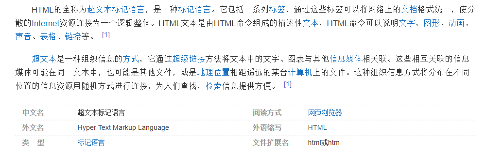 我们现代人有问题第一反应就是去百度一下,得到百度百科对HTML的官方回答,请看下图: