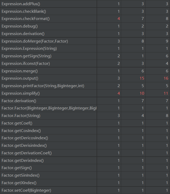 在程序复杂度方面可以看到,在判断符号以及判断如何输出时,由于情况较多,所以导致判断分支较多,这样的程序事实上是非常难以debug的,过多的不满足容斥原理的分支会导致人脑无法完全而又不重复的列出所有情况。而在类的复杂度方面,正如刚才所言,Poly类的复杂度过高,并没有将其中一些基础功能再进行分类。