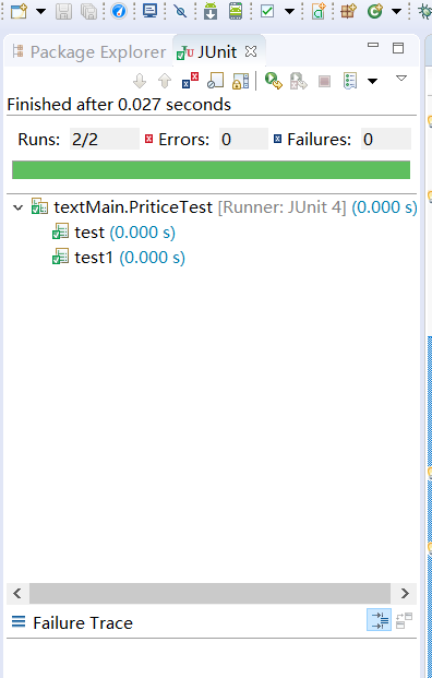 1 private Pritice pc; 2 @Test 3 public void test() { 4 int n = 4; 5 int[] ary = {-1,-2,-3,-4}; 6 int[] ans = {-1,-2,-3,-4}; 7 List<Integer> lst = pc.calculate(ary, n,ans);//原方法的调用 8 int s = lst.get(lst.size()-1); 9 assertEquals(s , -1);//比对输出与正确结果,看起是否正确 10 List<Integer> res = pc.add(n, lst, ans); 11 int x = lst.get(lst.size()-2); 12 int y = lst.get(lst.size()-1); 13 assertEquals(x , 0);//比对输出与正确结果,检查是否正确 14 assertEquals(y , 0); 15 } 16 @Test 17 public void test1() { 18 int n = 17; 19 int[] ary = {-32, -10, 33, -23, 32, -12, 41, -12, 1, 3, 5, -98, 70, -21, 10, -9, 61}; 20 int[] ans = {-32, -10, 33, -23, 32, -12, 41, -12, 1, 3, 5, -98, 70, -21, 10, -9, 61}; 21 List<Integer> lst = pc.calculate(ary, n,ans); 22 int s = lst.get(lst.size()-1); 23 assertEquals(s , 111); 24 List<Integer> res = pc.add(n, lst, ans); 25 int x = lst.get(lst.size()-2); 26 int y = lst.get(lst.size()-1); 27 assertEquals(x , 12); 28 assertEquals(y , 16); 29 }