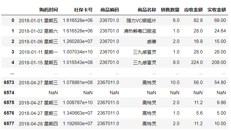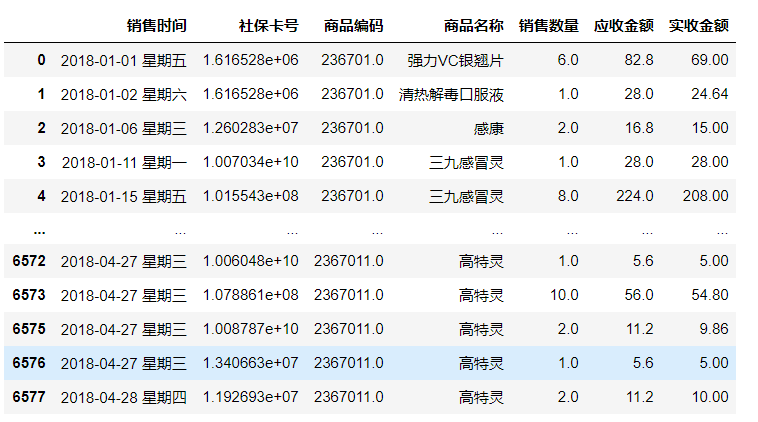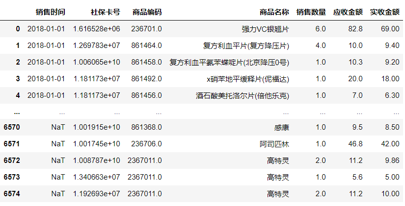 1 data = data.dropna(subset=['销售时间','社保卡号'], how='any') 2 data