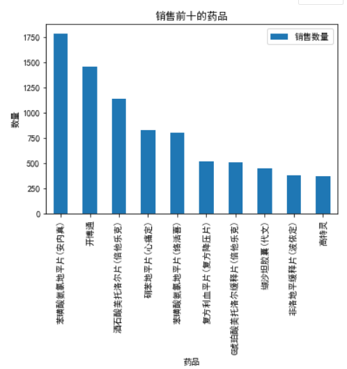 对于销售量排在前几位的药品,医院应该时刻关注,保证药品不会短缺而影响患者。得到销售数量最多的前十种药品的信息,这些信息也会有助于加强医院对药房的管理。