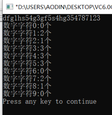 printf("数字字符%d:%d个\n",i,cnt[i]);