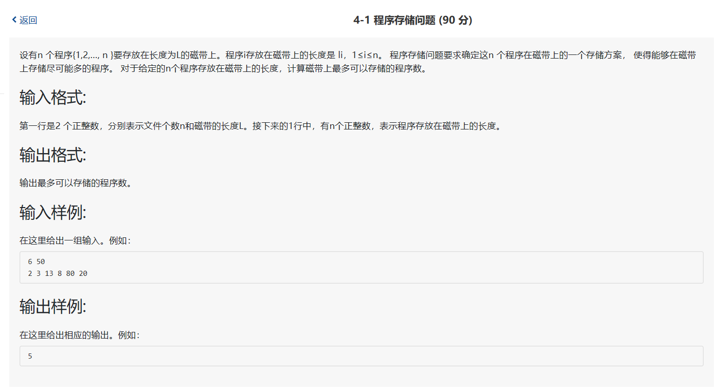 通过合理地选择安排程序,使长度一定磁带上存储尽可能多的程序,求最多可以存储的程序数。