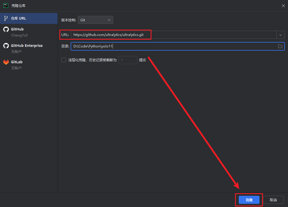 输入Yolo11的git链接:https://github.com/ultralytics/ultralytics.git