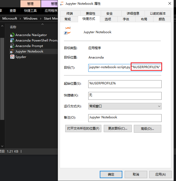 的快捷方式,右键属性,我这里的快捷方式是在win菜单Anconda