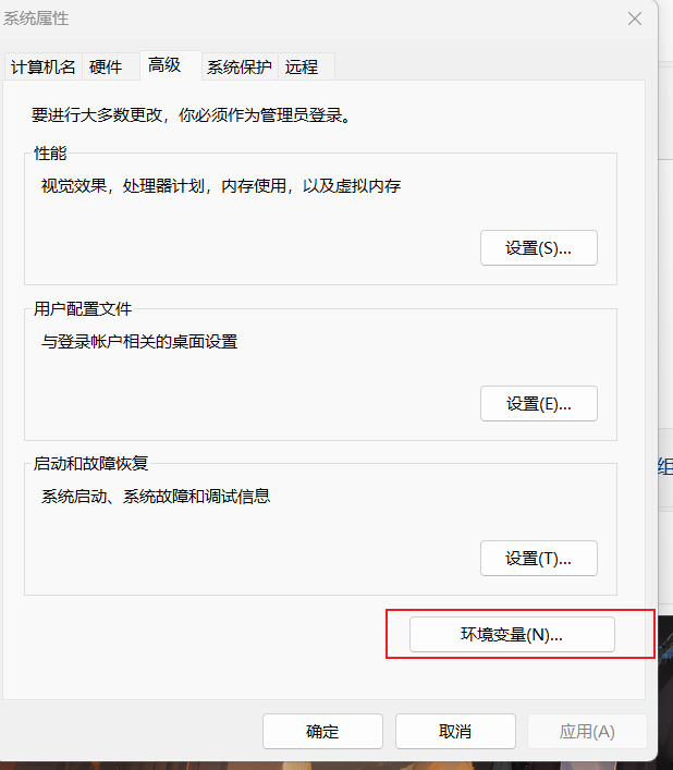 鼠标右键桌面的“此电脑”图标,点击“属性”,弹出系统窗口,然后点击“高级系统设置”,再点击环境变量配置,打开环境变量配置界面