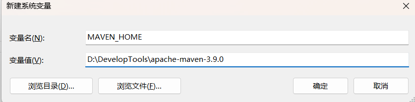 3. 在系统变量中新建一个MAVEN_HOME变量,变量值是你的maven存放路径