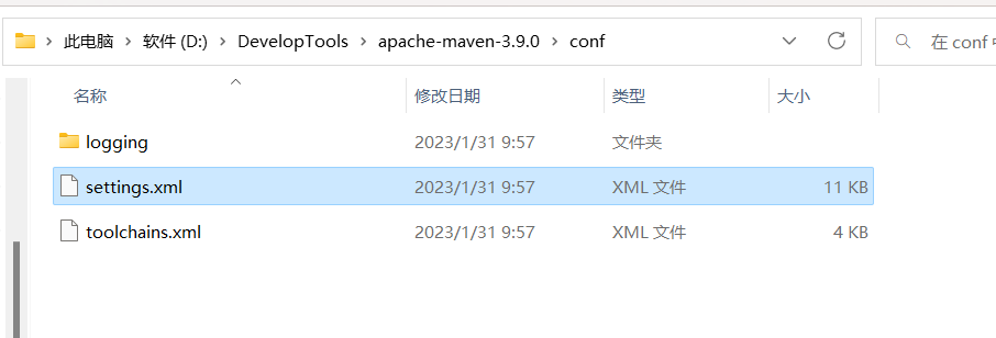 (2) 打开maven的安装目录,选择conf文件夹中的setting.xml文件