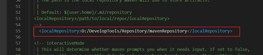 (3) 修改文件settings.xml,找到settings.xml中的localRepository配置,修改成刚刚创建的文件夹的目录。注意将