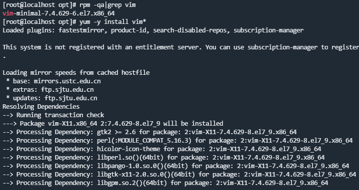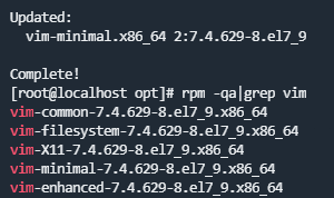 - 查看是否安装成功(如果缺少其中某个安装包,如:vim-minimal-7.4.629-8.el7_9.x86_64,可单独安装yum -y install vim-minimal)
