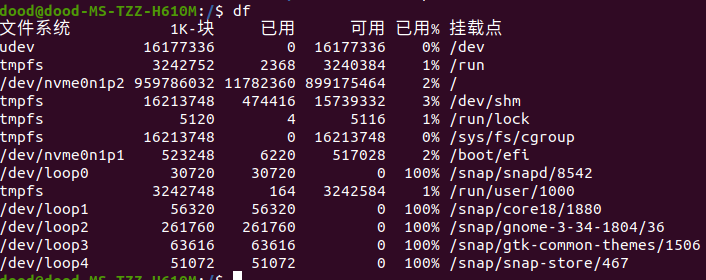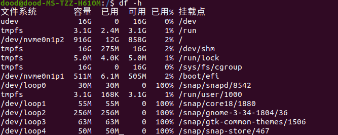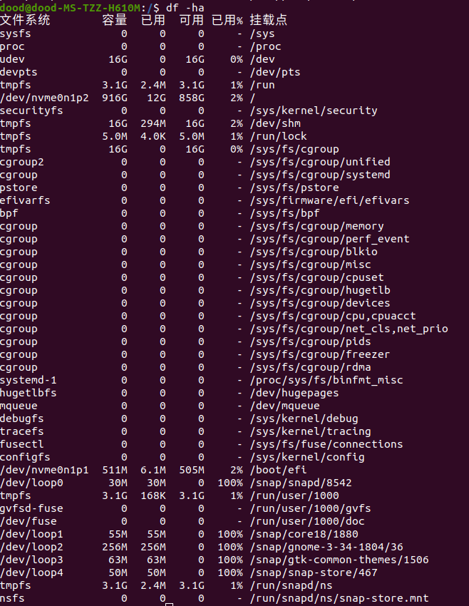 以MB 或者 GB 的容量显示,则在df后面加 -h ,-h是human-reading的简写,展示的数据可读性更好