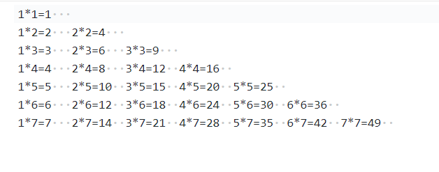 格式错误:左没有对齐,把%d*%d=%d改为%d*%d=%-4d。