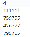 答案错误:开始我使用的取余数,过程很麻烦而且容易错误,可以使用scanf("%1d %1d %1d %1d %1d %1d",&a,&b,&c,&d,&e,&f)。