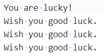 答案错误:You are lucky和Wish you good luck后面忘记打!和.