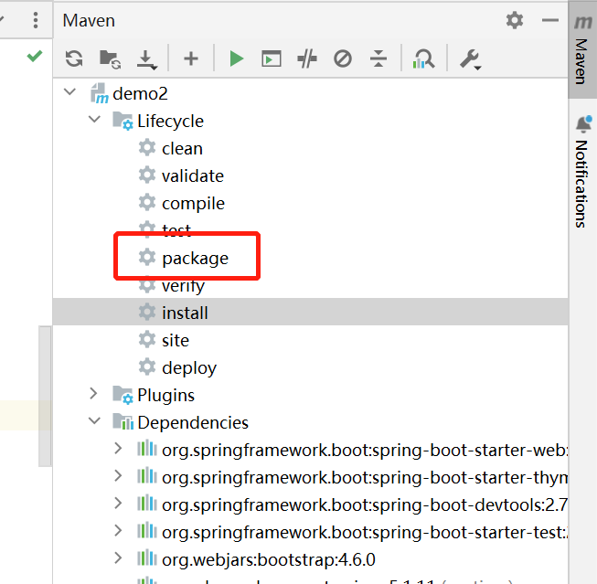 使用maven的命令: mvn package (将项目运行到package阶段),如: